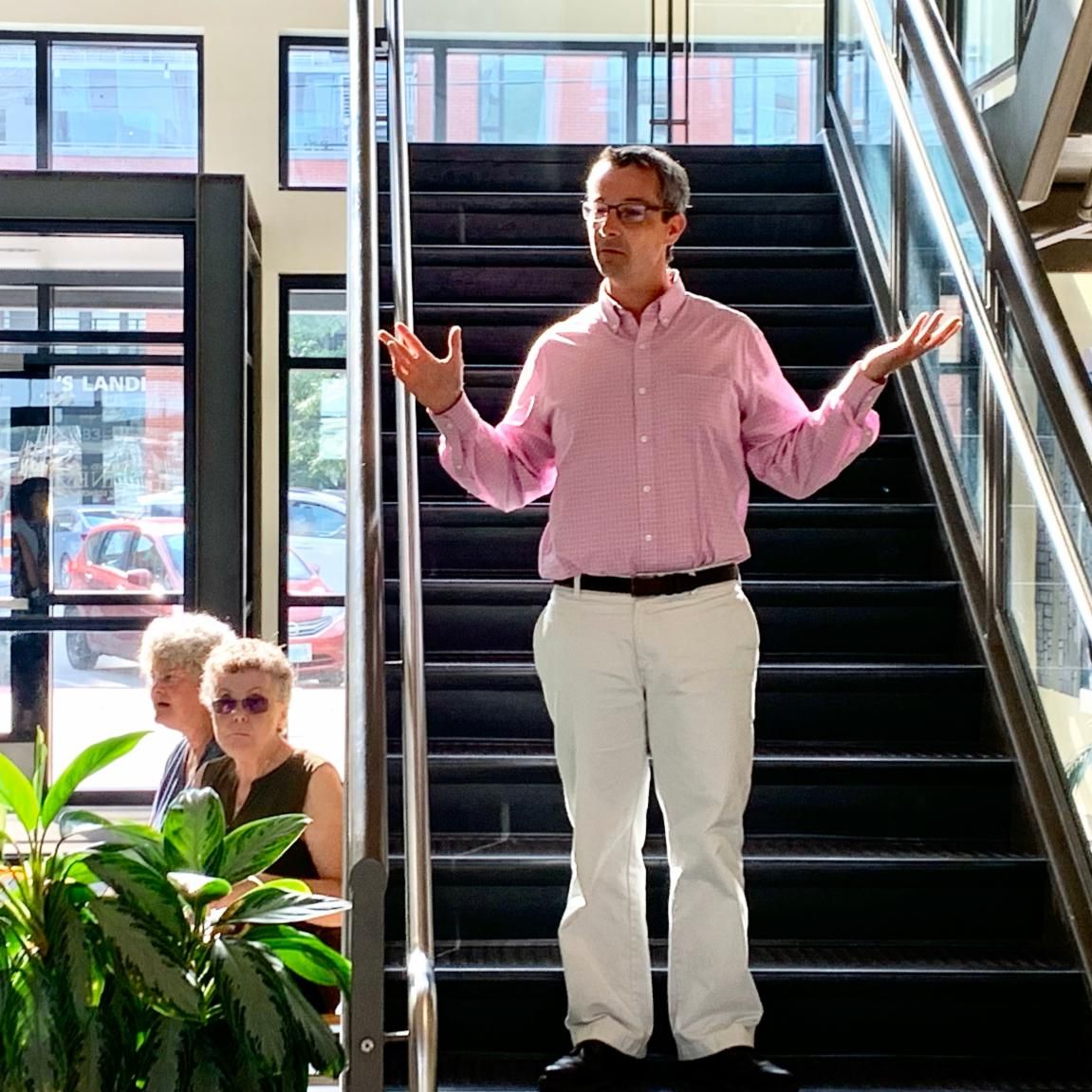 Victoria Mansion Executive Director Tim Brosnihan offers thanks at the Docent Appreciation Party at GMRI. | |