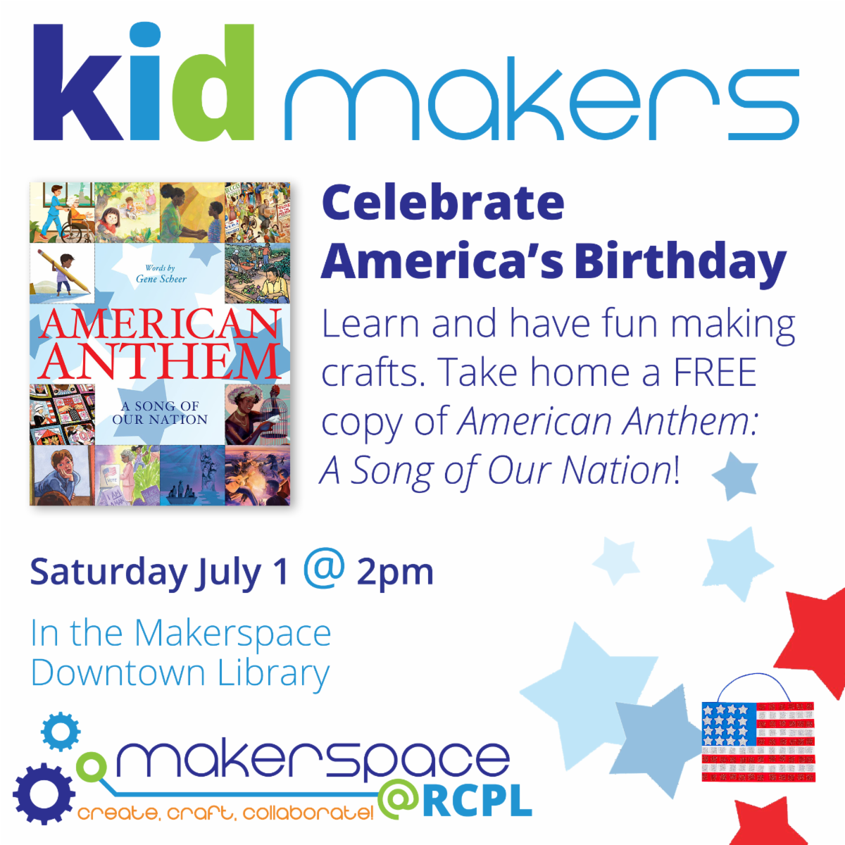 On Saturday, join us as we celebrate America’s birthday while having fun making crafts. Participants will receive a FREE copy of American Anthem: A Song of Our Nation.