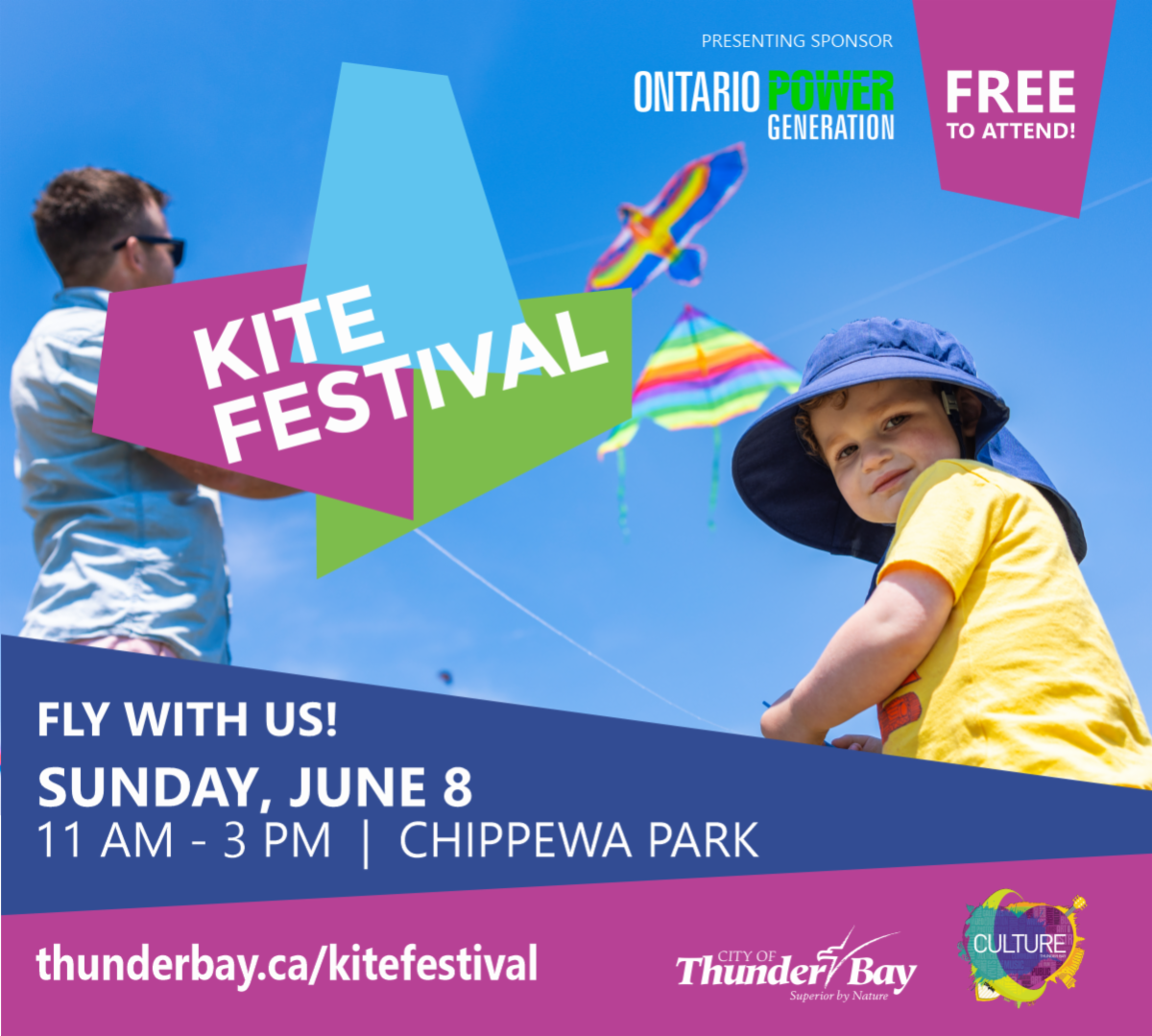 Get ready to soar with us at the Kite Festival on June 8th, from 11am - 3pm at Chippewa Park. A family friendly celebration filled with colourful kites, outdoor fun and exciting activities. Shuttle Service buses will be available from the Intercity area for easy access to the park.