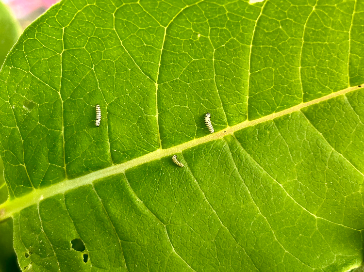 Check out these tiny little monarch babies! They are voracious eaters! Thankfully we grow many host plants in our Butterfly Garden as well as at the Living History Farm to keep these little ones happy!