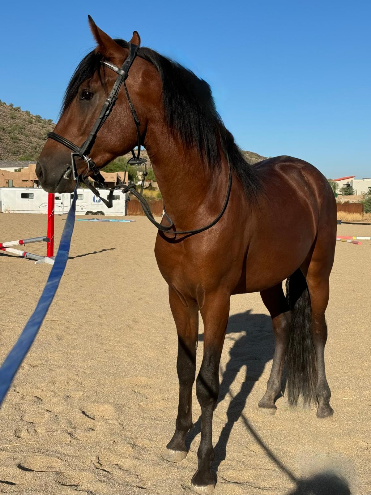 Olivia do Summerwind - TX 5 years, bay mare, under saddle. Dual registered. For breeding or sports.