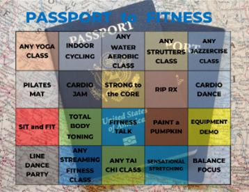 Sign up to participate in our ‘Passport to Fitness’ challenge during the entire month of October. You will receive a passport that requires you to participate in at least 15 out of 20 fitness events/classes. You must get your passport signed after completing each event/class.