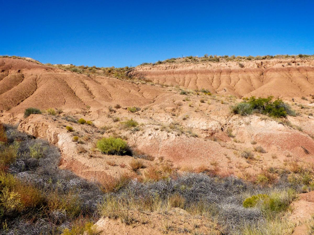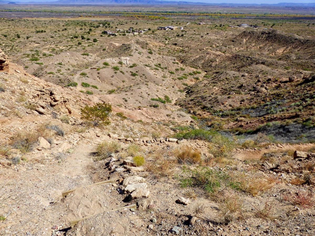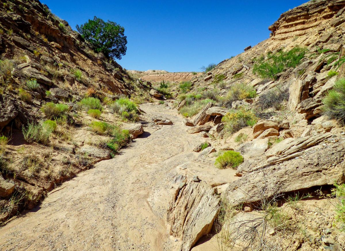 Canada del Ojo (~ 15 miles NW of Rt. 66 Casino; 47.5 miles from the church). Moderate (5 miles, a few hundred feet of vertical; some rocky walking)