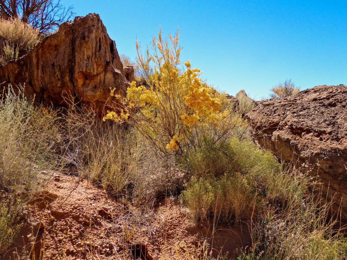 For years, Donna and I have driven past the exit to the Sevilleta National Wildlife Refuge and promised ourselves that we would return and explore the area. We’re doing that this fall. It’s located between Belen and Socorro, about an hour’s drive from Albuquerque. The refuge is one of the largest in the lower 48 states, containing 230,000 acres. The Visitor Center is just off I-25 and while it is closed at the moment the trails are available to walk and volunteer staff are often in the area. The trails range from a short wildflower loop to a four-mile hike to the mesa top. The pictures were taken last week on the Mesa View trail. (An extra benefit: the Refuge offers a free, 50-page color guide to high desert wildflowers that you can download from its website HERE.