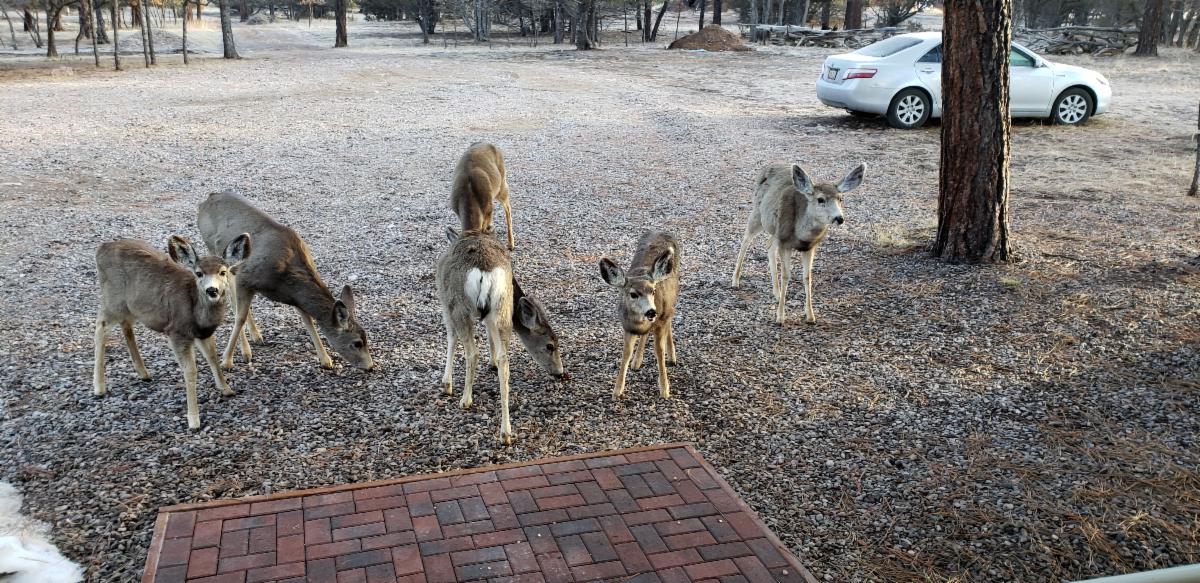 Wayne is working steadily to clean up the yard and some deer from our cabin on Heron Lake where we spend time away.