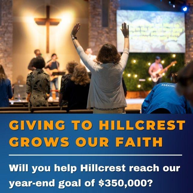 Please consider making a year-end gift to the mission and ministry of Hillcrest. If you have already given, thank you! If you are behind on your intended giving, please consider a catch-up gift today. If you want to give one time or set up a recurring gift, SEE HERE. Each gift supports what God is doing in and through Hillcrest, helps us end the year strong, and starts the new year fully funded. To count in this giving year, gifts must be postmarked or submitted online on 12-31-2025. If you would like to receive giving envelopes for 2026, please contact Meg in the Business Office at mluchies@hillcrestcov.org.