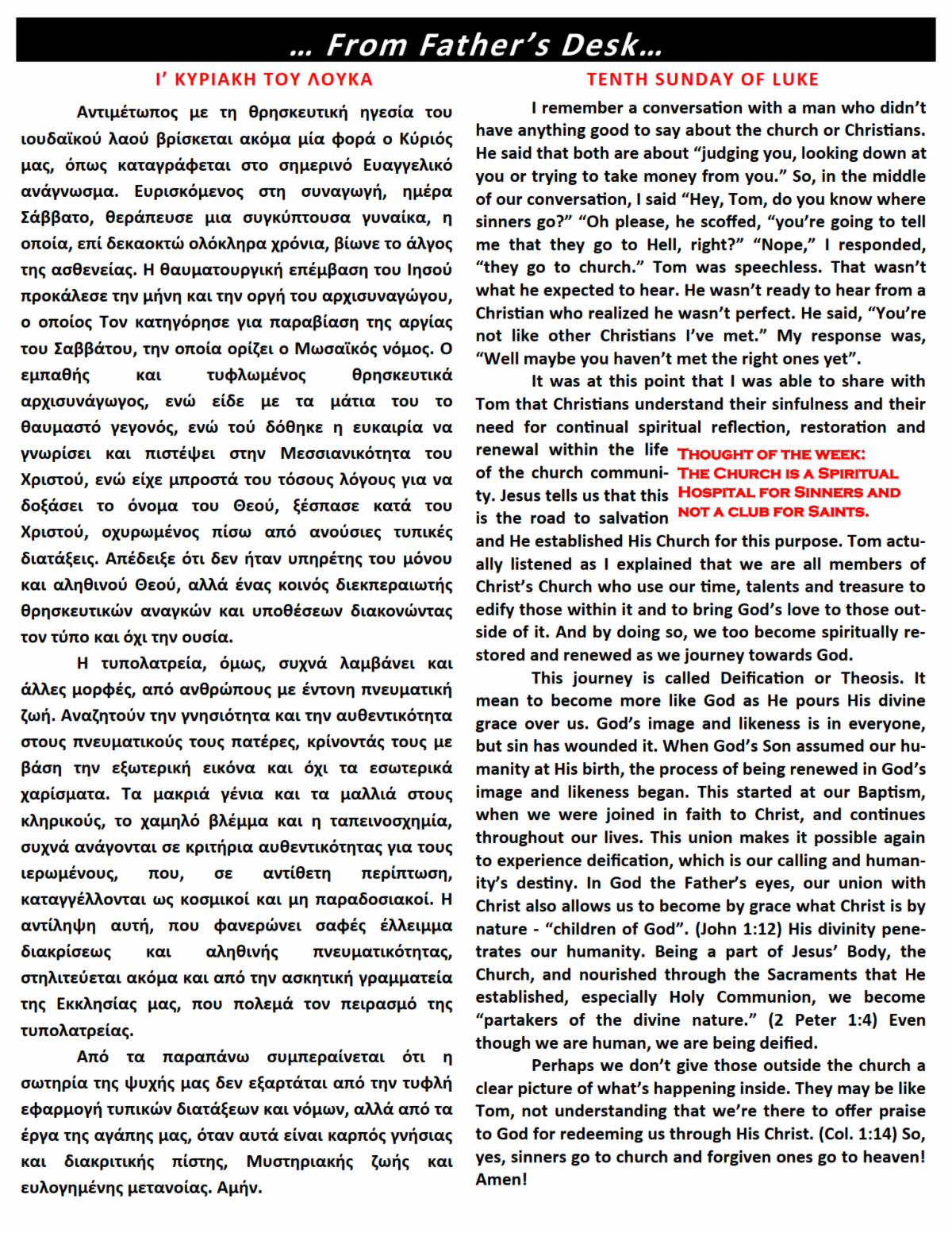 Thank you for your support of our beloved church