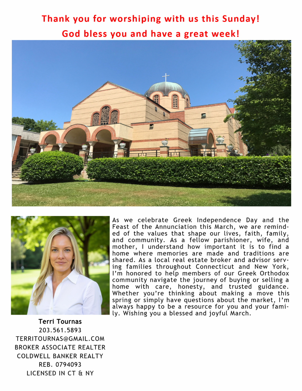 Thank you for your support of our beloved church