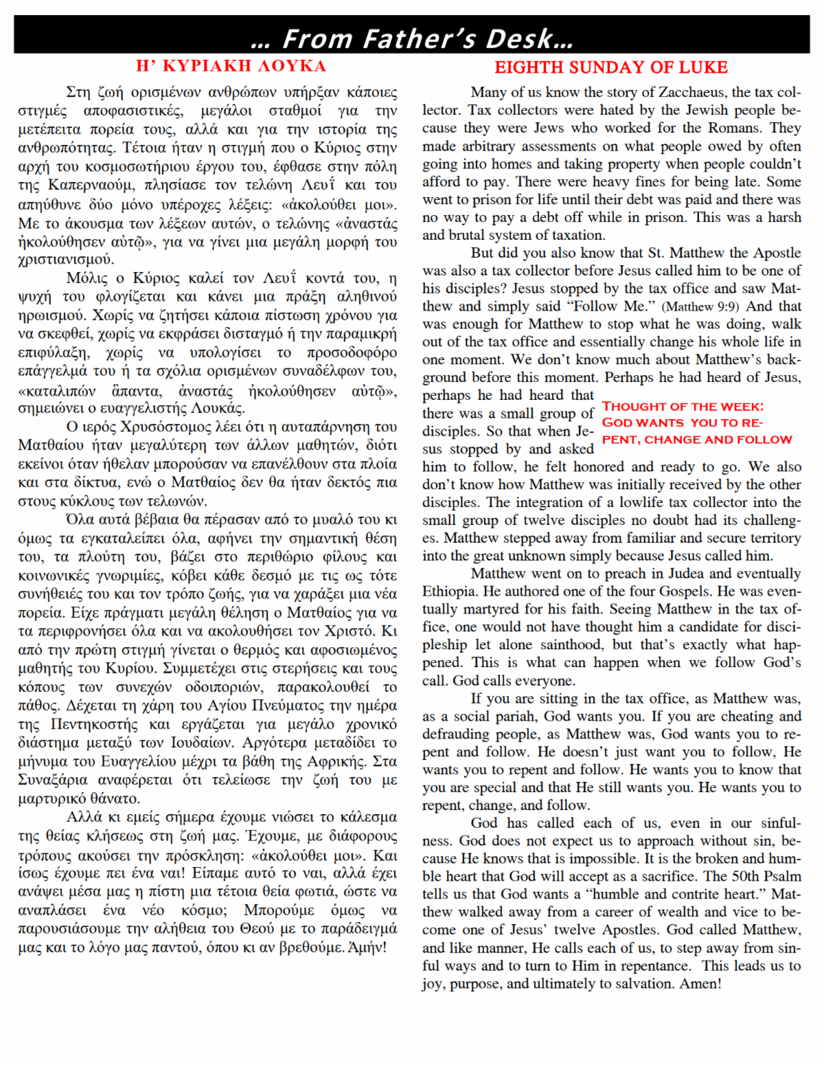 Thank you for your support of our beloved church