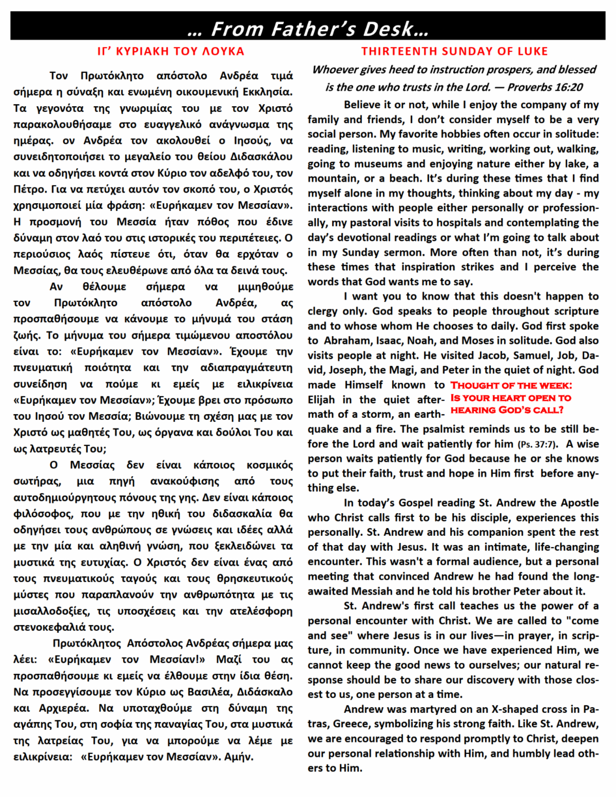 Thank you for your support of our beloved church