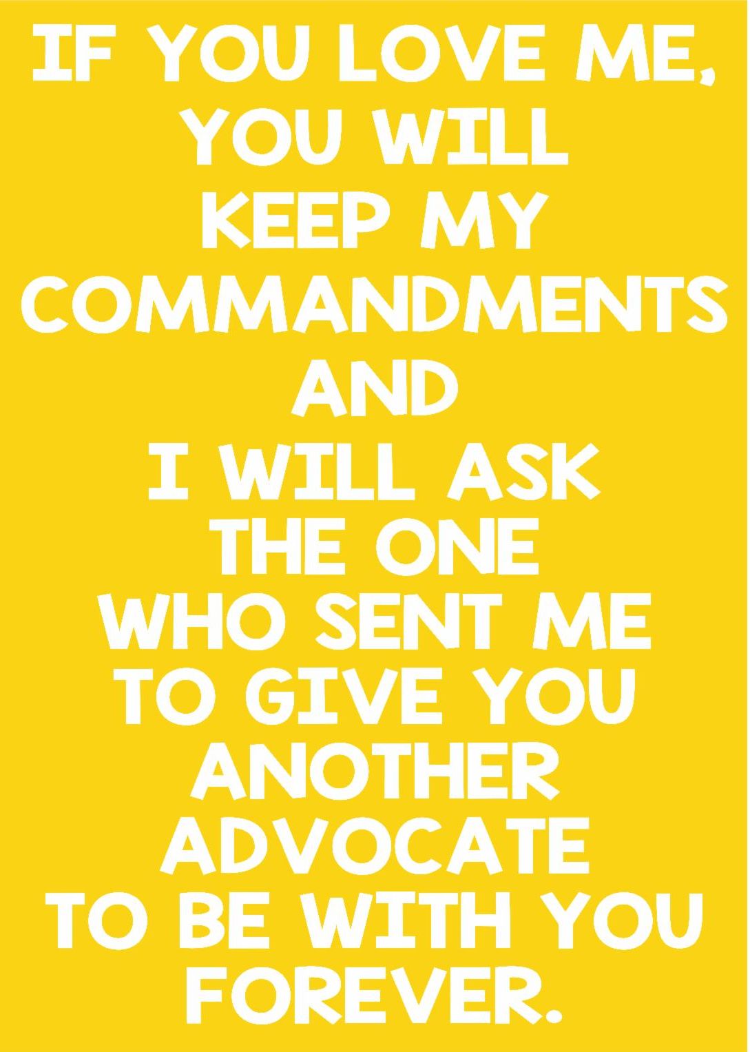 “If you love me, you will keep my commandments. And I will ask the Father, and he will give you another Advocate, to be with you forever. This is the Spirit of truth, whom the world cannot receive because it neither sees him nor knows him. You know him because he abides with you, and he will be in you.