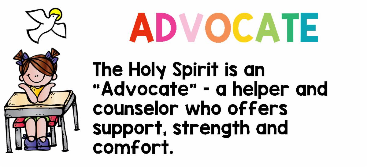 We also talked about the promise Jesus made to the disciples to reassure them they won't be lonely - that he promised to send the Holy Spirit, whom he called an "ADVOCATE". We learned that ADVOCATE means - the Holy Spirit, a helper and counselor who offers support, strength and comfort.