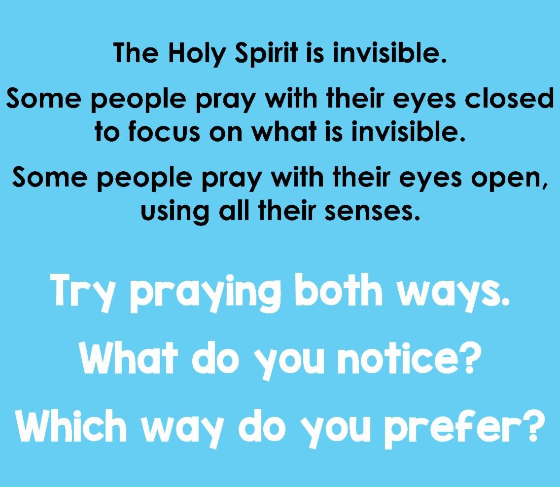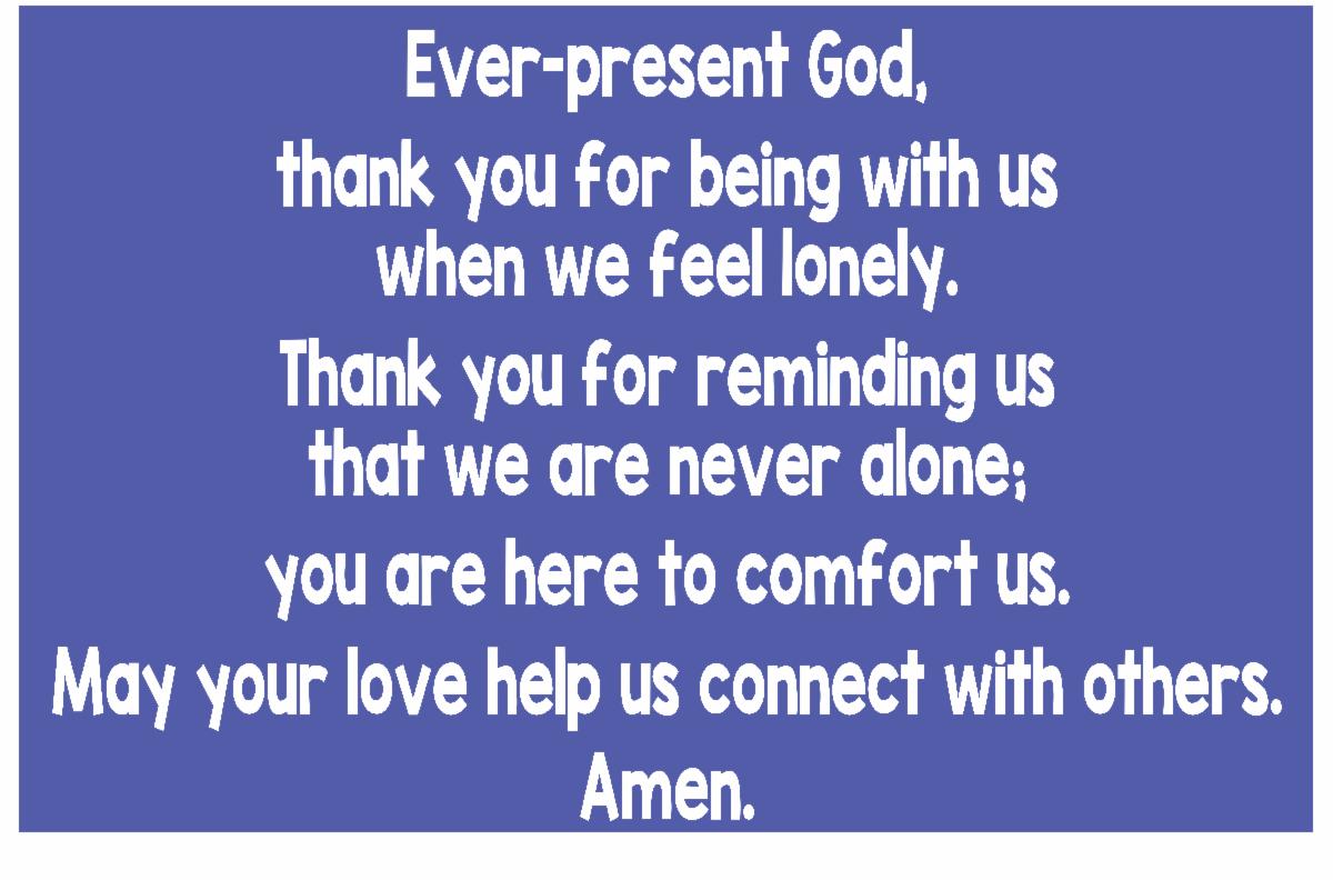 In our Bible story this week, the disciples are worried about Jesus leaving them. They're afraid they'll be alone and feel lonely without him. Jesus reassures the disciples that they will never be alone. He promises the Holy Spirit, an "Advocate", who will comfort them, and even when Jesus is gone, if they feel lonely, he'll still be there with them through the Holy Spirit. | |