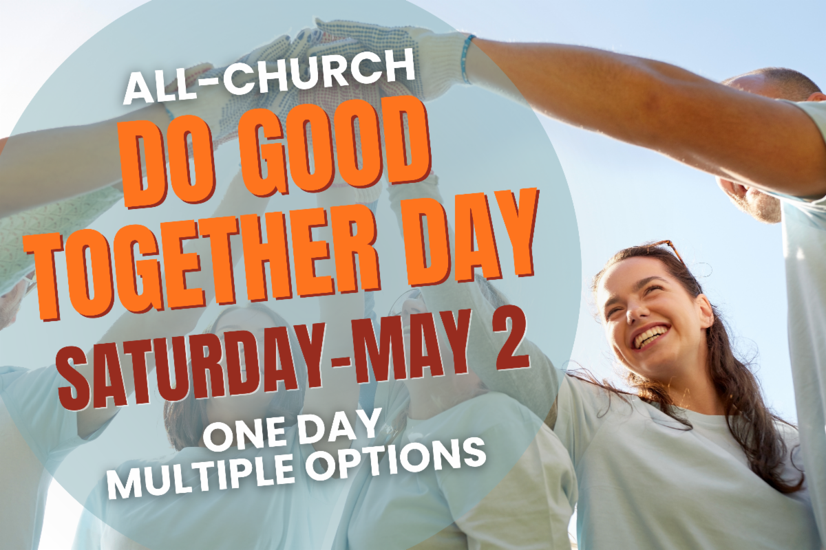 | Do Good Together Day is Saturday, May 2 | Choose from several ways to impact our community with three local organizations, plus the city of Prairie Village as it celebrates its 75th anniversary! Grab your friends, family, or small group to serve at House of Hope, KC Dream Center, and Harvesters Community Food Bank. Or you can assist the city of Prairie Village by cleaning up after the parade and hosting a kids' activity booth at the city celebration at Corinth Square. Serving others is one way we demonstrate Jesus' love to all! For more information, including times, descriptions, and sign up, see here... Deadline to say YES is Monday, April 27. | | |