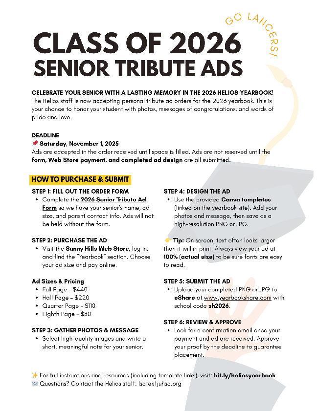 Tomorrow night is our Homecoming Dance in the quad from 7:30 to 10:30 PM! Ticket sales are still available online for the "A Dark Knight" dance on the SHHS webstore through 2:00 PM tomorrow. I cannot wait to see you there, Lancers!