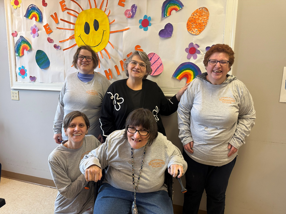 | Back row (L to R): Meghan (client), Three Rivers Program Manager Joyce, and Karley (client) Front row (L to R): Jessica (staff) and Karen (client) | | | |
