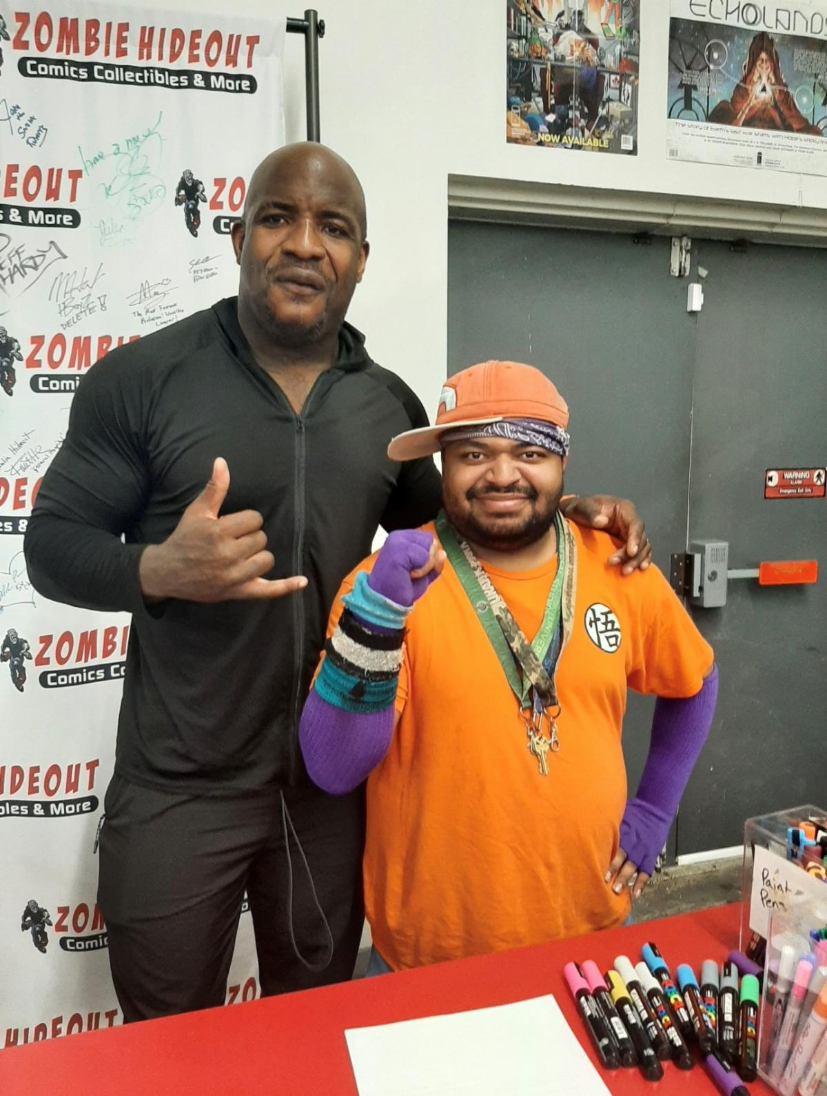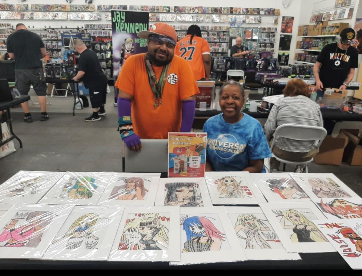 Chris, an artist from our Casey CBDS program, recently showcased his anime-inspired drawings at a wrestling-themed Meet & Greet event at Zombie Hideout. The event featured Total Nonstop Action Wrestling star Moose - and Chris came prepared with a table full of his original artwork, including special anime-wrestler mashups made just for the occasion.
