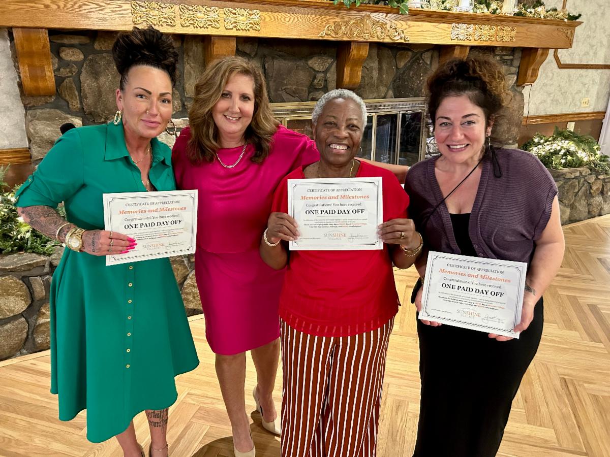 | | | | EIGHT STAFF MEMBERS WERE PROUDLY RECOGNIZED FOR THEIR RECENT PROMOTIONS. | | | THREE LUCKY EMPLOYEES WON SHINE TIME (PAID TIME OFF) - RAFFLED OFF DURING THE EVENT | | | 12 Employees Celebrate Significant Milestones | | | Betty O'Connor