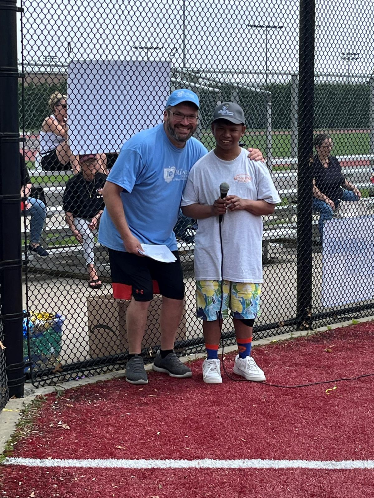 Client Mangal represented Sunshine Village by throwing out the first pitch for a Miracle League baseball game earlier this summer.