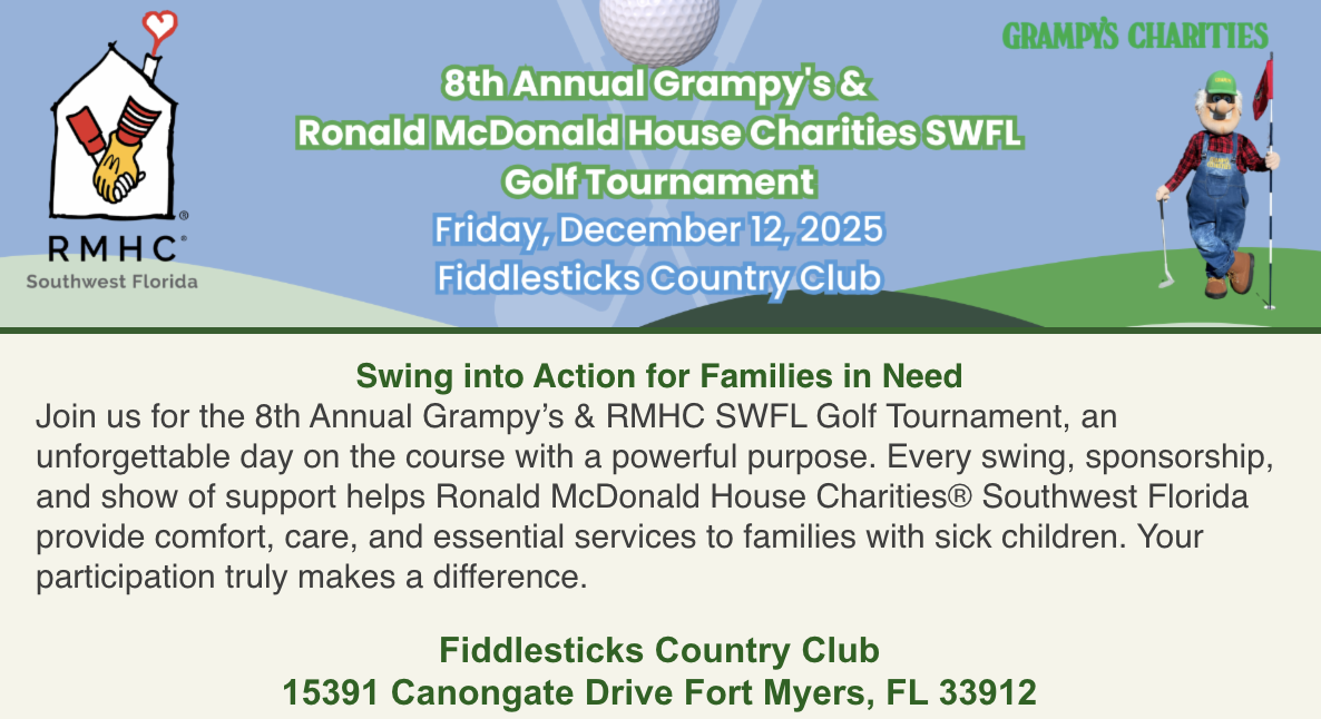 Grampy's Charities is grateful for the support we have received this year from donors like you! We have been able to provided children with much needed care: from adaptive bikes for Robbie's Riders, to camp experience at Trailways Camp, support for children through the Ronald McDonald House Charities in SWFL to name a few. This Giving Tuesday consider a donation to help us continue this work. At Grampy’s Charities we raise funds to support organizations transforming the lives of children. It is our hope that by partnering with comfort and research based charities we will be able to make a difference in the lives of kids who need us most. |