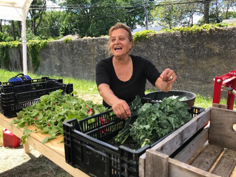 Teddy is growing all types of organic produce including tomatoes, peppers, cucumbers, eggplant, squash, spinach, kale, scallions, radishes, broccoli, snap peas, onions, garlic, beans, and several types of lettuce.