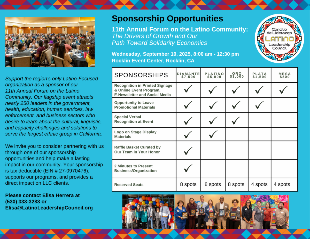 Placer Community Foundation is a trusted partner of the Latino Leadership Council (LLC), supporting our shared mission to uplift Latino families. They value bilingual and bicultural engagement. Click the link above to explore current opportunities.