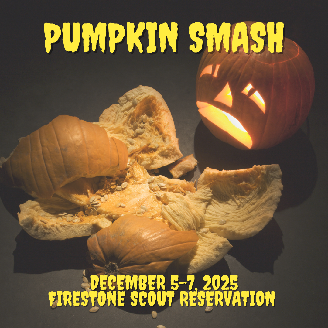Join us at Firestone Scout Reservation for a weekend of pumpkin destruction and friendly competition. Scouts will put their skills to the test with tomahawks, bats, bowling balls, and more as they compete to create the ultimate pumpkin smash.