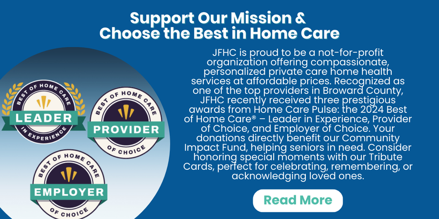 Jewish Family Home Care is dedicated to providing care for seniors of all faiths in Broward County. We are honored to have been recognized as the Best of Home Care Provider of Choice for the 5th consecutive year!