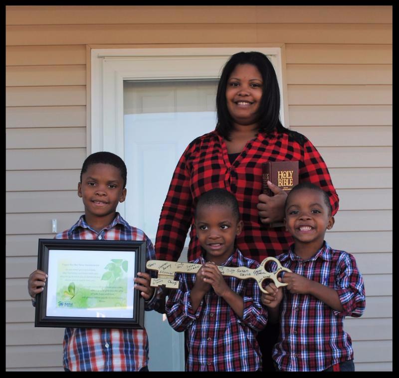 We recently dedicated her new Habitat home in Ingram Village in Ellendale! Many Habitat staff members, AmeriCorps service members, volunteers, and our friends from Berkshire Hathaway Home Services/Gallo Realty were there to celebrate with She'Don and her family. The boys graciously helped mom receive a ceremonial gold key, a homeowner's prayer, and Bible in accordance with our long-standing Habitat tradition. We wish them many years of health and happiness together in their new home!