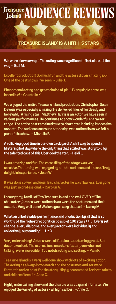 " Audiences should expect a pirate seafaring adventure, a swashbuckling, rip-roaring good time. We're hand to hand, we're knives, we're firearms, blades are flying, and hopefully, from moment one, we've got the gas pedal on and we don't let go till the show's over!" ~ Aaron Blanco, Fight Choreographer