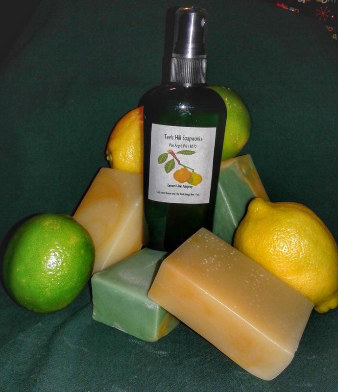 Summer is the time for citrus. If you like the scent of fresh squeezed lemons and limes, you'll llove Teels Hill's Lemon Lime or Lemon Sunshine soaps. Susan also has two fresh sprays that will filll your kitchen with clean citrus goodness - choose from Lemon Lime or Awakening. Some other citrusey soaps are Bay Lime, Island Earth, Spring Breeze and Orange Spice.