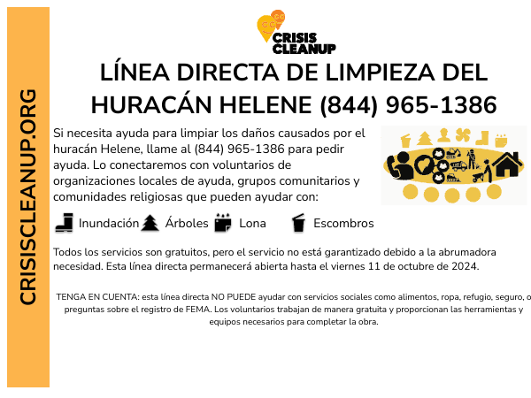 This contact is for any in a state affected by Hurricane Helene
