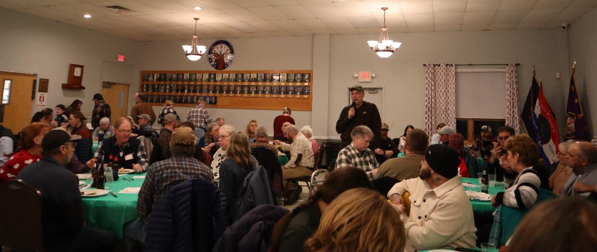 | | More photos from the Franklin & Grand Isle County's 20th Anniversary celebration! | | Left to right: Daniel Bliss, UVM Extension; Emily Klein, FWA Coordinator; Scott Magnan, FWA Board Chair; and Jeff Sanders, UVM Extension | Comedian Rusty "The Logger" Dewees gave a great performance that had the entire room laughing. | | |