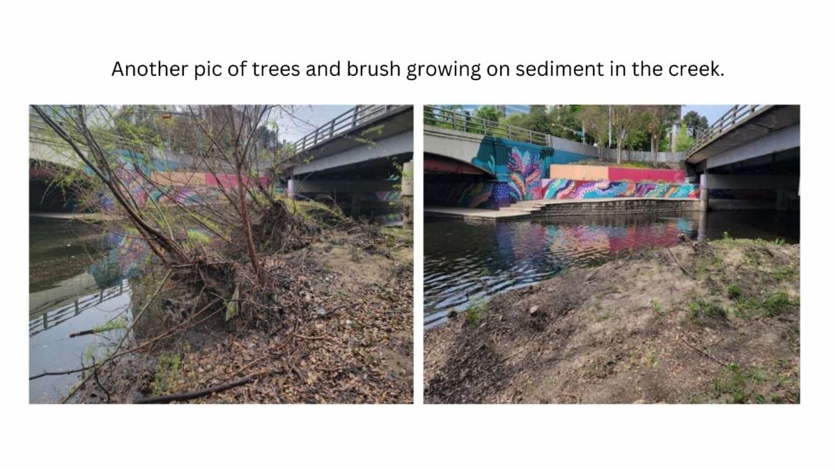 Moreover, TCA is tackling the issue of saplings and brush growing on the sediment within the creek, areas notorious for accumulating significant amounts of trash. These efforts not only address immediate concerns but also underscore the urgent need for dredging Turtle Creek to restore its natural flow and vitality.
