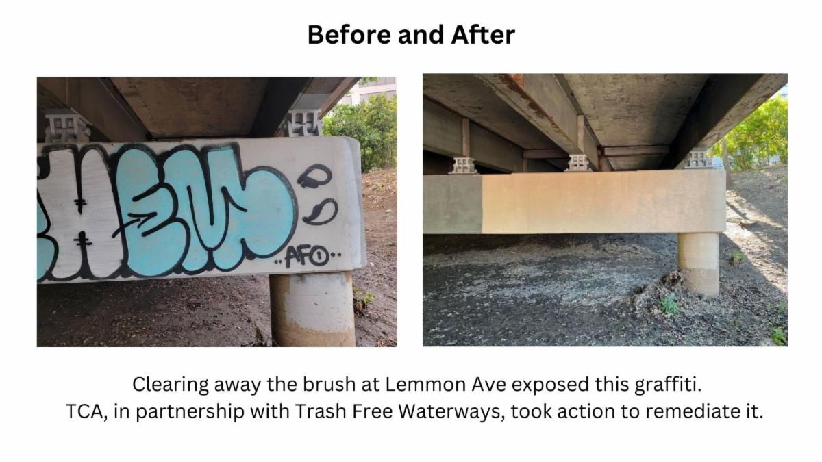 TCA continues its proactive efforts to clear undergrowth and brush along the waterway. Spearheading this initiative is TCA's trusted vendor, Trash Free Waterways, whose services have evolved beyond mere trash removal to encompass a comprehensive approach to creek maintenance.