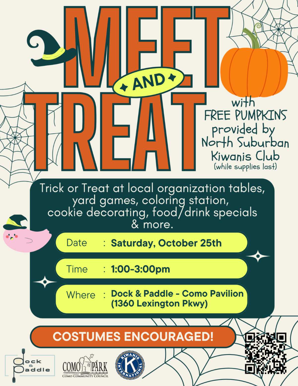 D10 Como Community Council, in coordination with Dock and Paddle (Como Lakeside Pavilion) and the North Suburban Kiwanis is hosting a Meet and Treat.