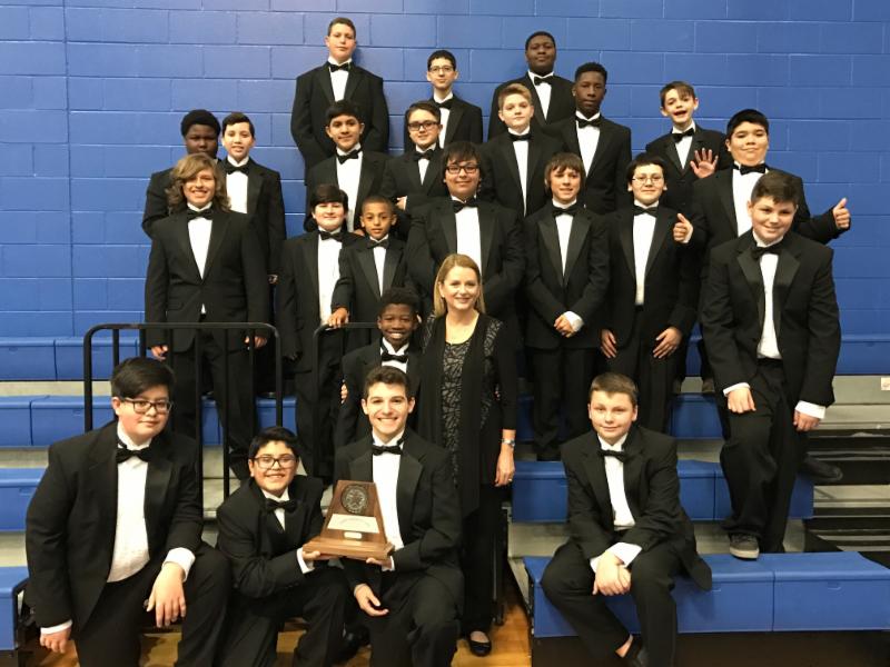 Congratulations to Blocker Boys Choir and their director, Tee Jo Gasca! They just completed their UIL Concert and Sightreading Contest and earned Sweepstakes! Earning Sweepstakes means they received the highest scores in both Concert performance and Sightreading contest. Sightreading is the ability to read and produce both instrumental and vocal music at first sight. Students performed a song they had never performed or been taught before to earn the 1 in that contest. The concert performance score of 1 was based on songs they had prepared in advance. Congratulations!