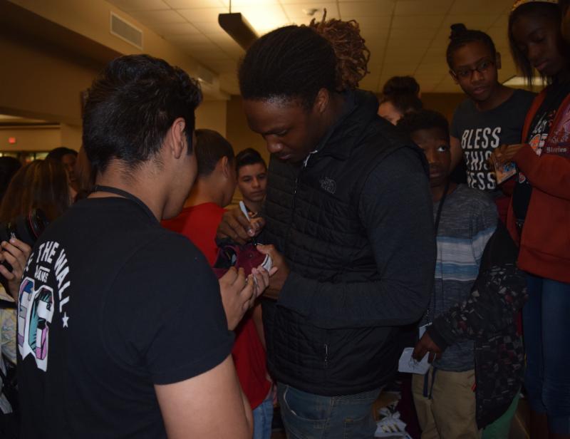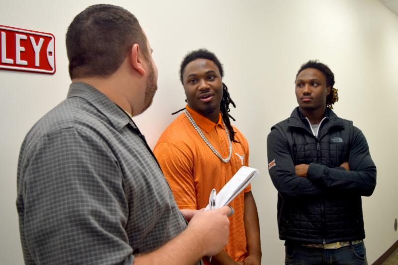 Texas City High School alums and The University of Texas football standouts D'Onta Foreman and Armanti Foreman surprised their siblings and Blocker and TCHS students with a visit this week. These local celebrities talked to the kids about the importance of doing well in school and working hard. They also enjoyed visiting with former teachers and staff. The Foreman brothers always get treated like celebrities since students are looking up to them. Thanks for visiting and come back any time!