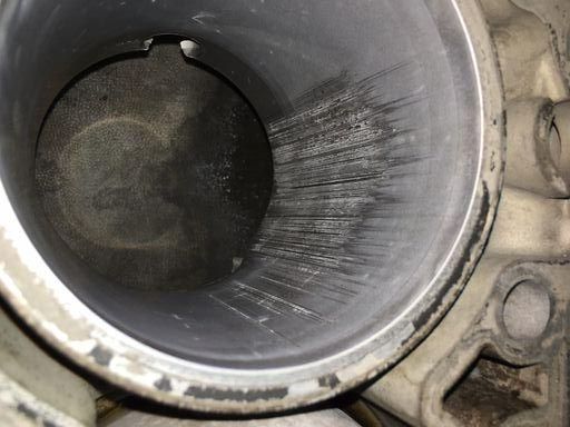 Models with Lokasil or Alusil hypereutectic engine blocks can suffer from cylinder bore scoring caused by a breakdown of the Aluminum-Silicon piston/cylinder/ring system.