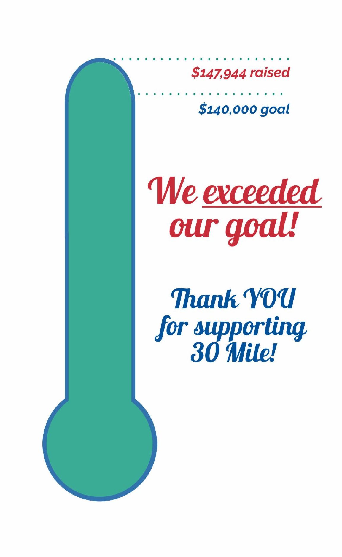 - To those of you who continued to support 30 Mile even if you were unable to meet the challenge this time.