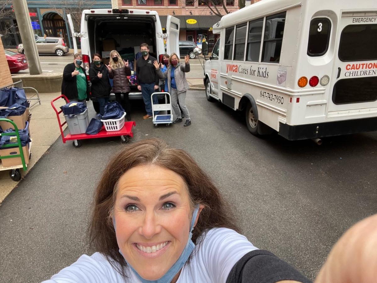 EPEL and partners loaded the Gail Borden Public Library vans with materials for over 250 families to distribute at