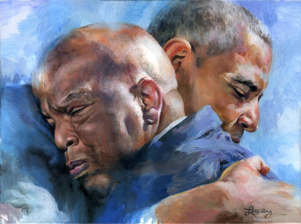 “Rep John Lewis / President Obama portrait” Congressman John Lewis is embraced by President Barack Obama after receiving the Presidential Medal of Freedom.