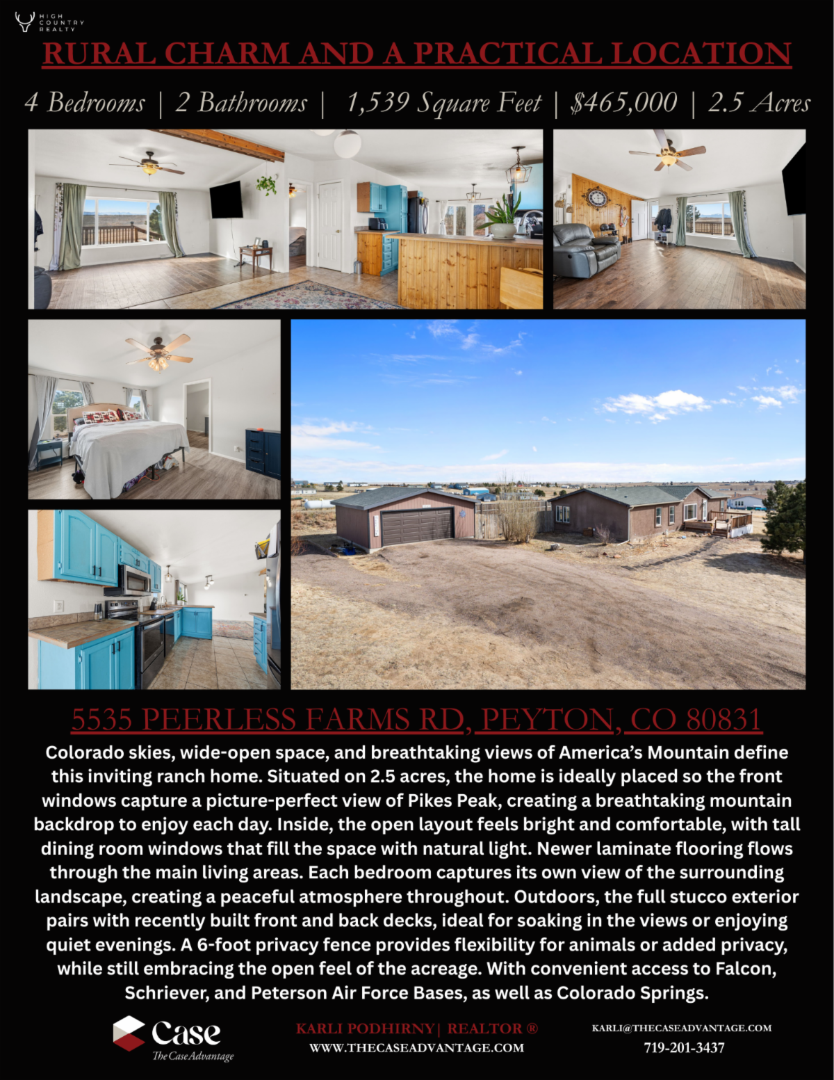 - Unbeatable Setting: Large windows featuring unobstructed Pikes Peak views.