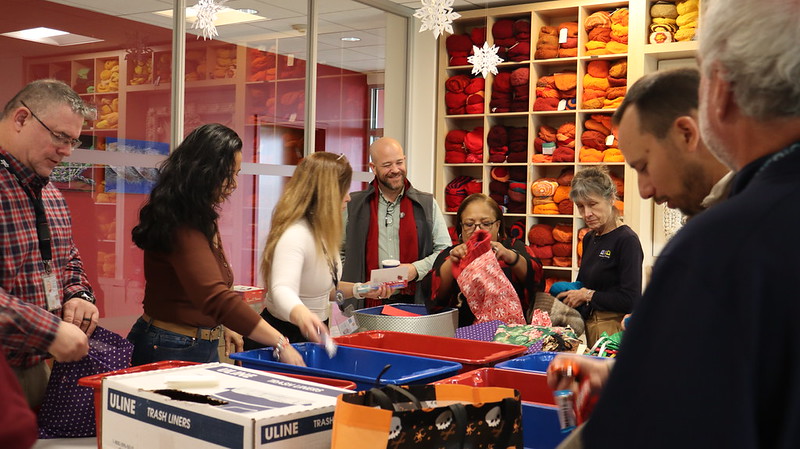 | | Port Packing Day Volunteers fill ditty bags with handmade knits, toiletries, and treats to be distributed to seafarers this holiday season. | | |