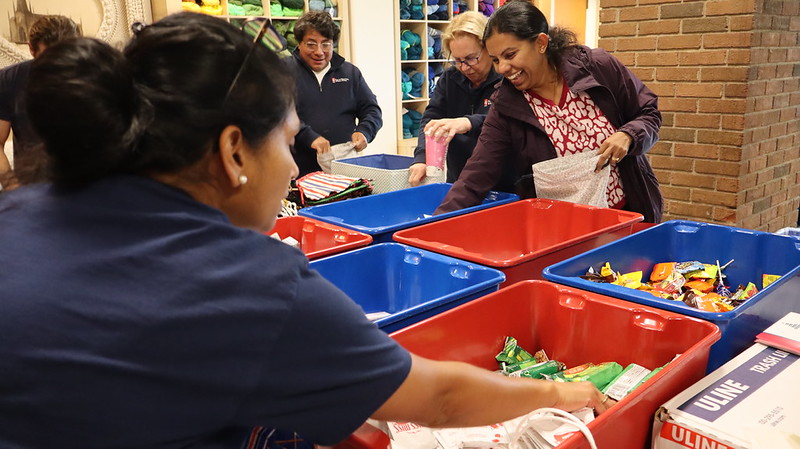 On Thursday, October 30, students and faculty from the San Jacinto Maritime Training Center came together in La Porte, TX, to volunteer their time for the Seamen’s Church Institute’s (SCI) annual Christmas at Sea on the River packing event. Under the coordination of SCI Chaplain the Rev. Nancy Simpson, and San Jacinto's Capt. Amy Arrowood, participants packed and labeled 2,745 hand-knit and crocheted garments—hats and scarves lovingly made by crafting enthusiasts from across the United States and beyond. These gifts, along with Season’s Greeting cards, will soon make their way to inland and near-coastal mariners, delivered to their companies through the efforts of SCI Chaplains, Chaplain Associates, and other volunteers.