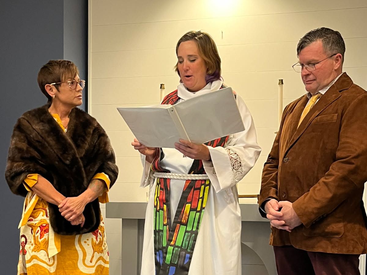 | | A Sacred Moment on the River: Celebrating an SCI Wedding in Paducah | SCI Supervisory Chaplain, the Rev. Grace Pardun (center), officiates the wedding of Jae Raybrun (left) and CME Instructor, Stephen Douglas (left) at St. Nicholas Chapel at the Center for Maritime Education in Paducah. | |