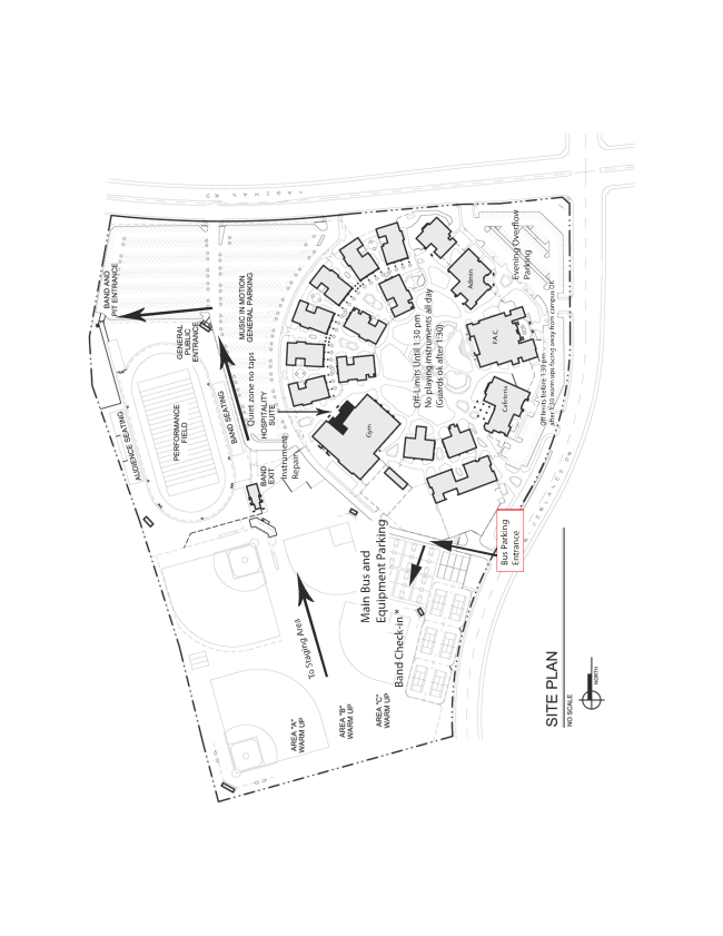 The Music in Motion Band Tournament is held at Centennial High School at 8601 Hageman Road, Bakersfield, CA 93312.. Driving time depends on traffic, but it can take between an hour and a half to two and a half hours to get there. Click here for a campus map: Centennial HS Campus Map
