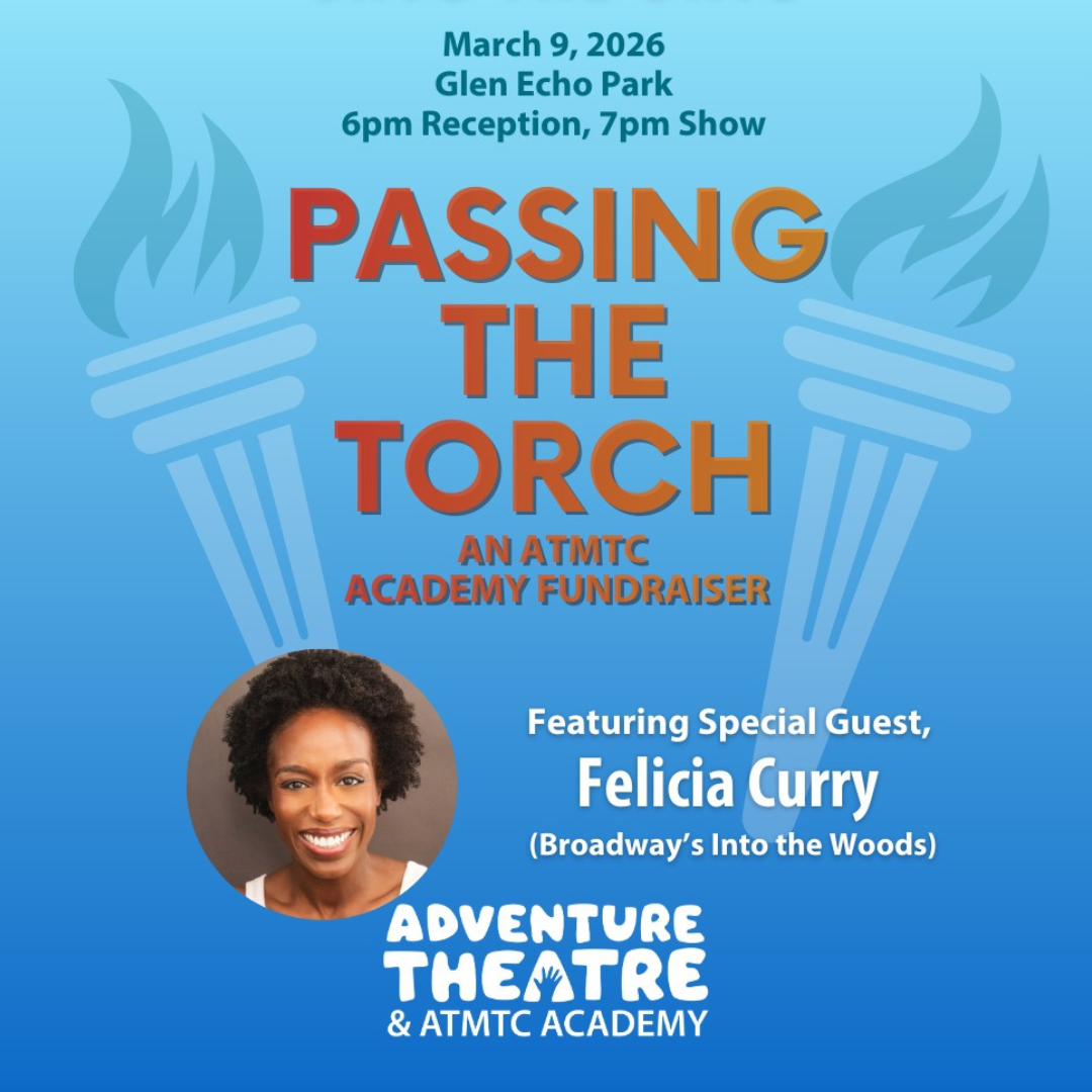 Saturday evening, join Adventure Theatre MTC for Passing the Torch Cabaret, a fundraising event in support of the ATMTC Academy. Enjoy an evening of music and memories, as Academy Alumni starring on DMV stages “pass the torch” to the next generation of talented ATMTC students!