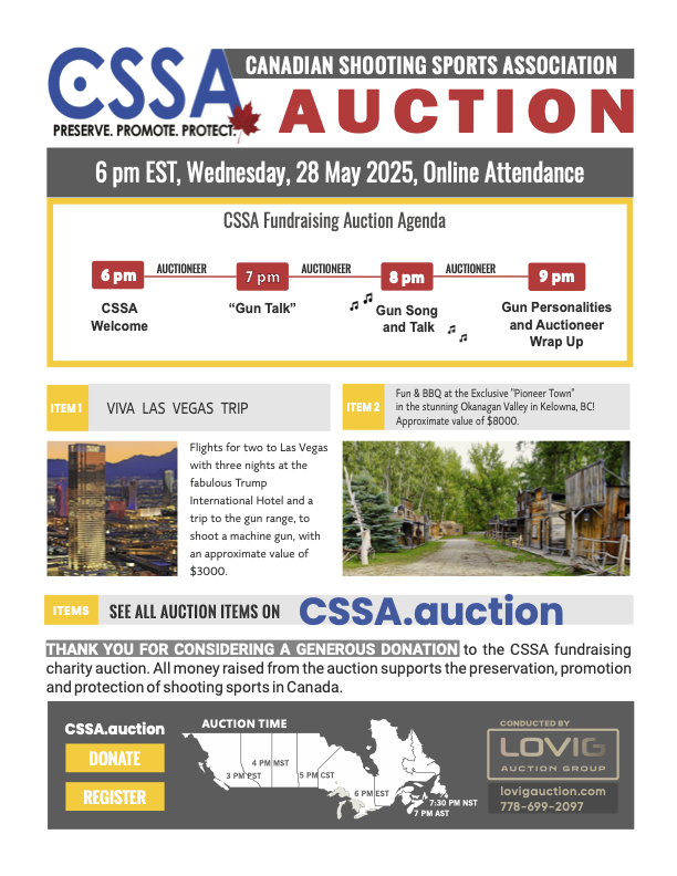 | | Support your favourite organization – the CSSA – as we continue our fight to preserve, promote and protect your firearms rights. Sign up on our website or call 1-888-873-4339. | | |