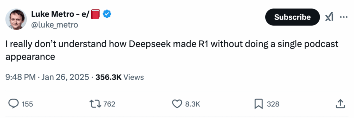 But to put all of this in larger context, Andreessen’s Sputnik comparison isn’t totally inaccurate. Especially if you, like him, believe that artificial general intelligence is both possible and a genuine nuclear-level threat to our existence or space-race-esque quest to change the future of humanity. But I’d actually compare DeepSeek to something much more recent: TikTok.